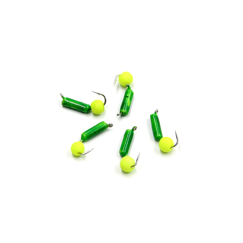 Мормышка безнасадочная ЯМАН "Гвоздешарик" зеленый, d-2,5 мм, вес 0,6 г, шарик желтый неон (уп. 5 шт.