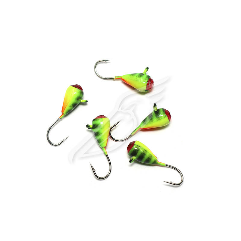 Мормышка вольф"ЯМАН"Капля с ушк. + кр. камень, р.4, вес 1 г, цв.окунь(уп.5 шт.)