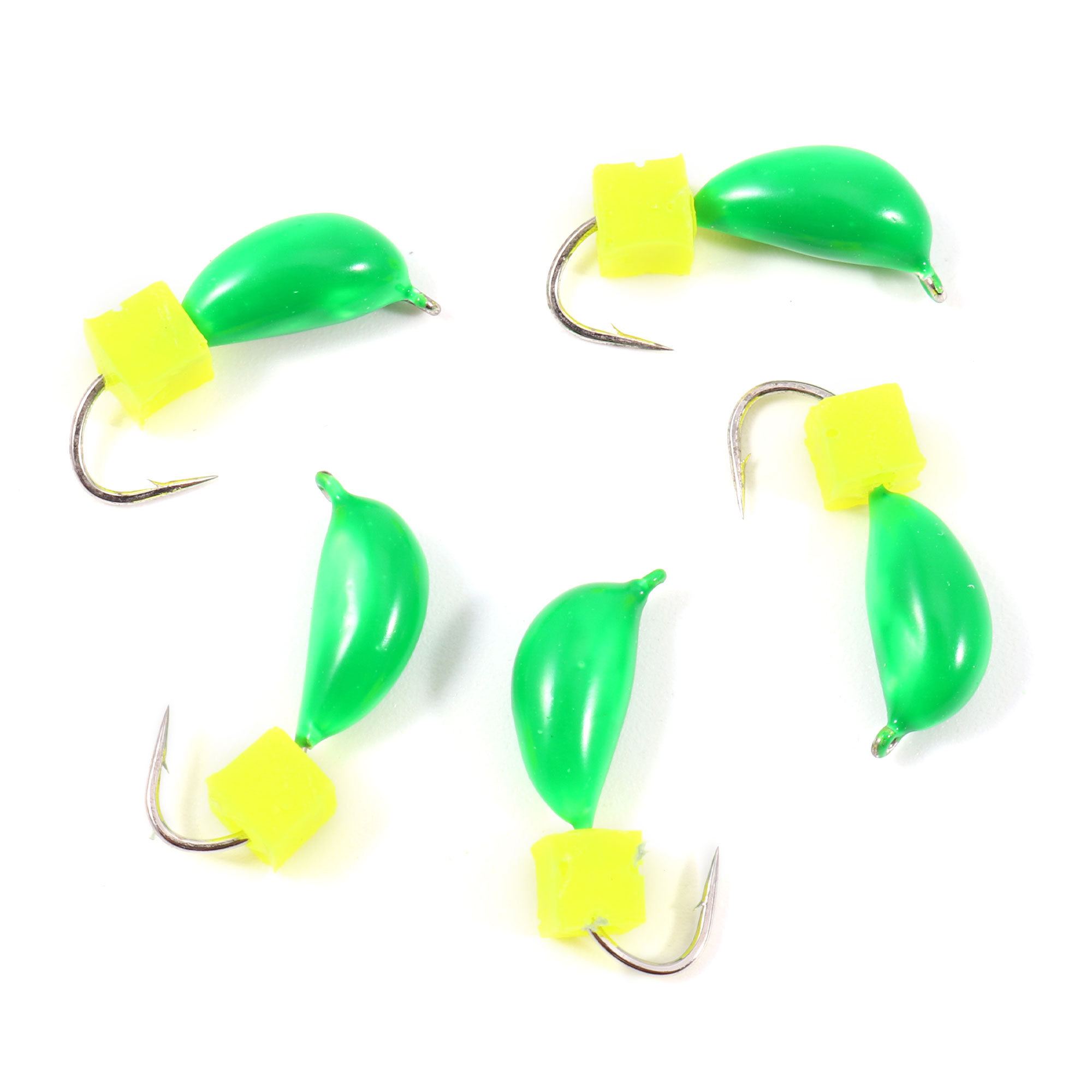 Мормышка безнасад. ЯМАН "Банан" зеленый, d-4 мм, вес 1 г, шарик желтый неон (уп. 5 шт.)