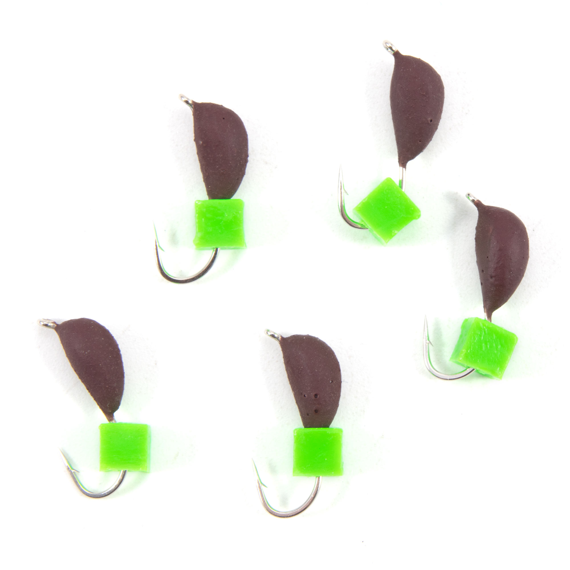 Мормышка безнасад. ЯМАН "Банан" матовый шоколад, d-3,5 мм, вес 0,7 г, ядреный кубик зеленый (уп. 5 шт.)