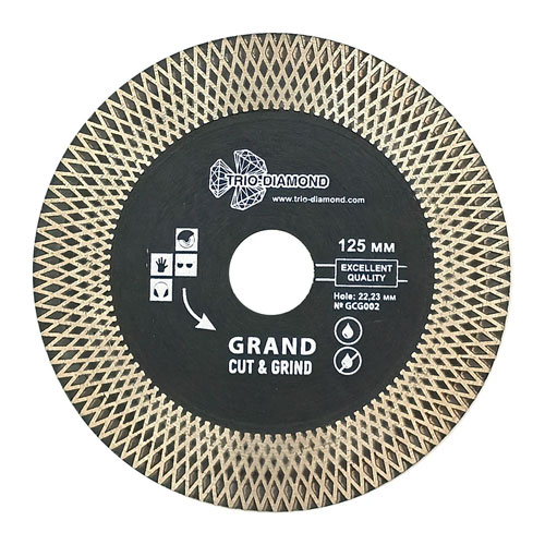 Диск алмазный турбо Trio-Diamond Grand Cut & Grind Диаметр: 125; Посадка: 22.23; Высота кромки: 25/10; Толщина кромки: 1.7; Сухой/мокрый рез.