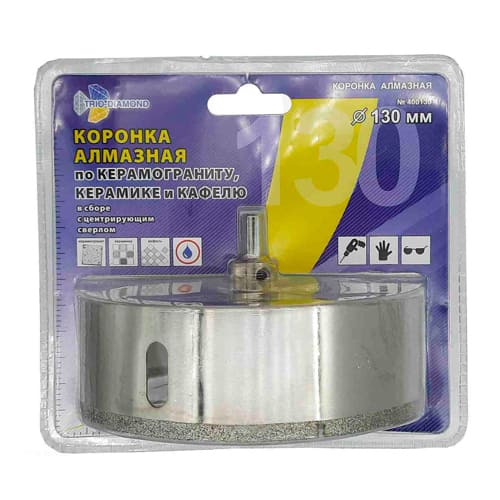 Коронка алмазная по керамике и кафелю с центрирующим сверлом 130 мм