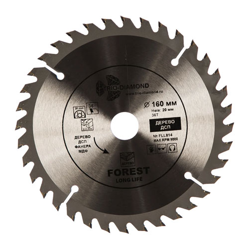 Диск пильный Trio-Diamond Forest Long Life Диаметр: 160; Посадка: 20/16; Толщина кромки: 2,2; Зубьев: 36; Угол наклона: 15º.