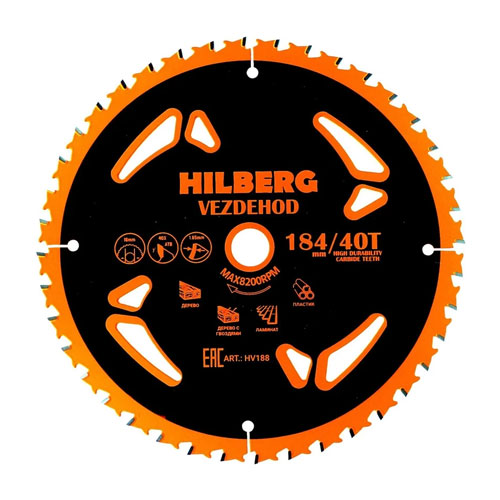 Диск пильный Hilberg Vezdehod Диаметр: 184; Посадка: 16; Толщина кромки: 1,65; Зубьев: 40; Угол наклона: 7º .