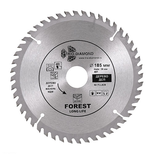Диск пильный Trio-Diamond Forest Long Life Диаметр: 185; Посадка: 30/20/16; Толщина кромки: 2,4; Зубьев: 48; Угол наклона: 15º.