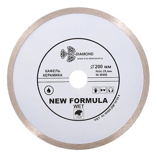 Диск алмазный сплошной Trio-Diamond New Formula Wet Диаметр: 200; Посадка: 25.4 (переходные кольца на 22.23); Высота кромки: 10; Толщина кромки: 2.2; Мокрый рез.