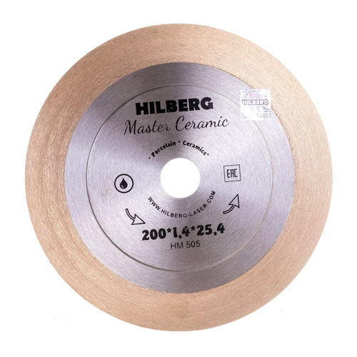 Диск алмазный сплошной ультратонкий Hilberg Master Ceramic для резки плитки под 45 градусов Диаметр: 200; Посадка: 25.4; Высота кромки: 25/25; Толщина кромки: 1.4; Мокрый рез.