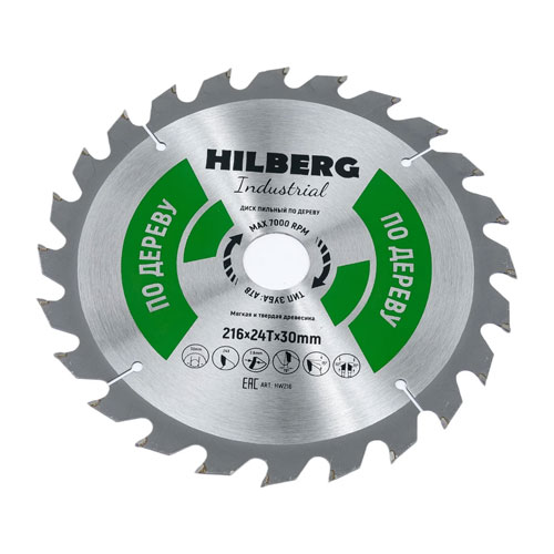 Диск пильный Hilberg Industrial Дерево Диаметр: 216; Посадка: 30; Толщина кромки: 2,4; Зубьев: 24; Угол наклона: 15º.