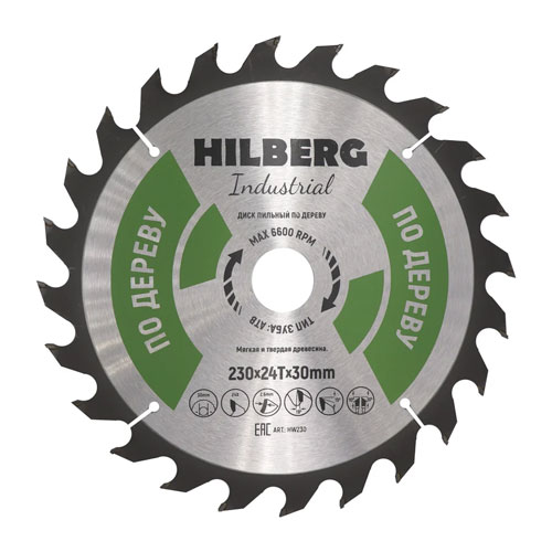 Диск пильный Hilberg Industrial Дерево Диаметр: 230; Посадка: 30; Толщина кромки: 2,4; Зубьев: 24; Угол наклона: 15º.