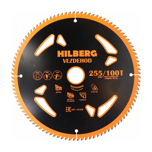 Диск пильный Hilberg Vezdehod Диаметр: 255; Посадка: 30; Толщина кромки: 2,0; Зубьев: 100; Угол наклона: 7º .