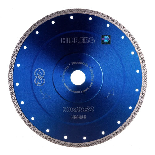 Диск алмазный турбо ультратонкий Hilberg Hard Materials Х-type Диаметр: 300; Посадка: 32 (переходное кольцо на 25.4); Высота кромки: 10; Толщина кромки: 2.2; Сухой/мокрый рез.