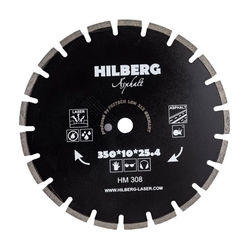 Диск алмазный сегментный с защитным зубом Hilberg Asphalt Laser Диаметр: 350; Посадка: 25.4; Высота кромки: 10; Толщина кромки: 3.2; Сегментов: 21; Сухой/мокрый рез.