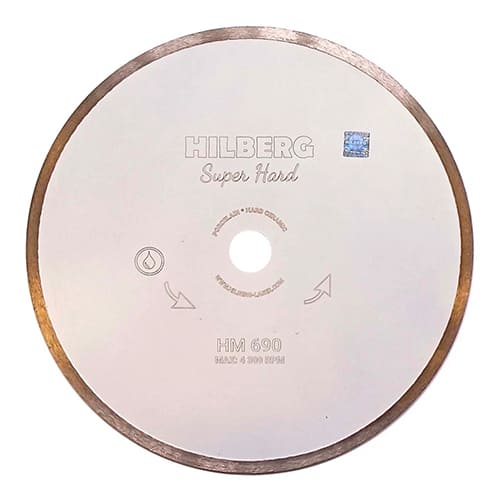 Диск алмазный сплошной ультратонкий Hilberg Super Hard Сплошной Диаметр: 350; Посадка: 32 (переходное кольцо на 25.4); Высота кромки: 10; Толщина кромки: 2.0; Мокрый рез.