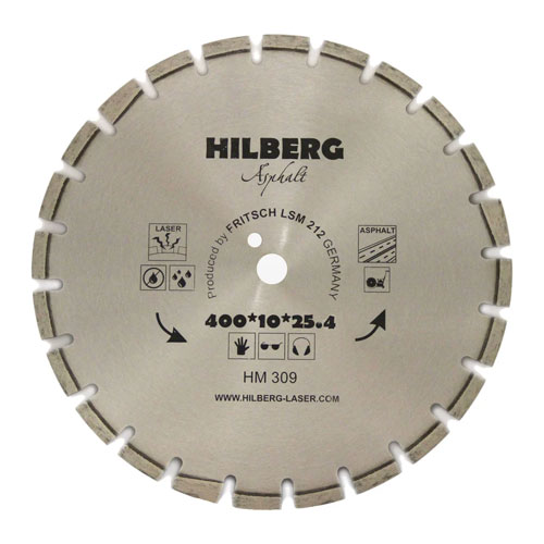 Диск алмазный сегментный с защитным зубом Hilberg Asphalt Laser Диаметр: 400; Посадка: 25.4; Высота кромки: 10; Толщина кромки: 3.4; Сегментов: 24; Сухой/мокрый рез.