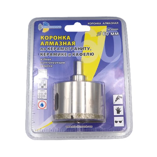 Коронка алмазная по керамике и кафелю с центрирующим сверлом 60 мм