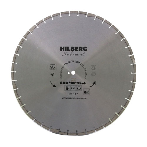 Диск алмазный сегментный с защитным зубом Hilberg Hard Materials Laser Диаметр: 800; Посадка: 25.4; Высота кромки: 10; Толщина кромки: 4.9; Сегментов: 54; Мокрый рез.