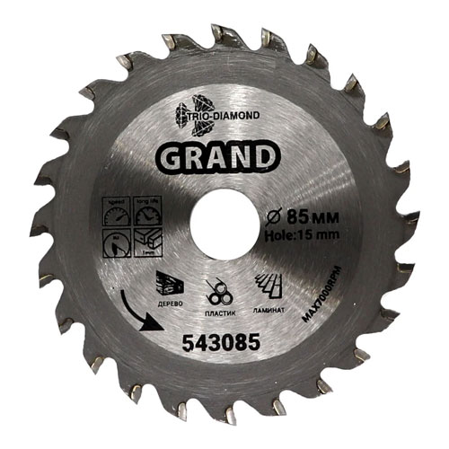 Диск пильный Trio-Diamond Grand Универсал Диаметр: 85; Посадка: 15; Зубьев: 24; Толщина кромки: 1.
