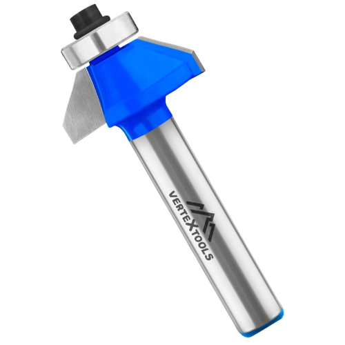 Фреза кромочная конусная с подшипником хвостовик - 8 мм, D-25 мм, H-10 мм, а° - 45°, B-8,5 мм, L-54,3 мм vertextools 3520-081025