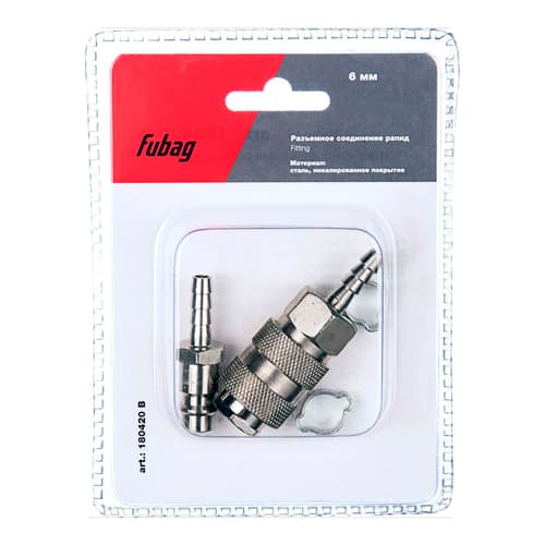 Набор разъемное соединение рапид (муфта), елочка 6 мм, рапид (штуцер) елочка, блистер, Fubag