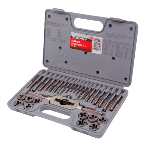 Набор метчиков и плашек 31 предмет MATRIX MASTER 77337 - комплект специальных инструментов для нарезки внутренних и наружных резьб. Укомплектован в пластиковый кейс, что облегчает переноску и способствует удобству хранения. Все инструменты выполнены из инструментальной легированной стали, поэтому отличаются износостойкостью и высокой прочностью.