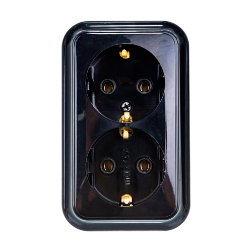 Розетка ОП 2-местн з/к BYLECTRICA, РА16-261, ЧЕРНАЯ, 1/8/32