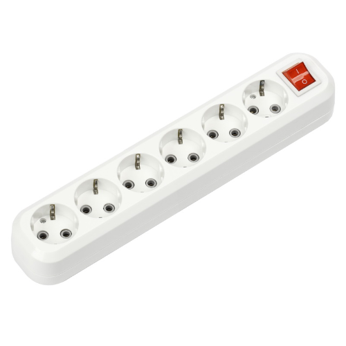 Колодка бытовая, 6 гнезд 16А/3,5кВт c выключателем и заземлением, SBE-16-6-00-ZS