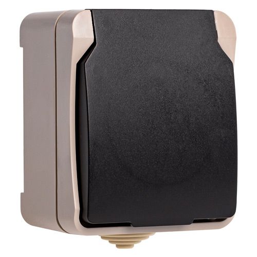 Розетка 1-местная с заземлением 16А с крышкой, IP54, бежевый, "Сатурн" (SBE-04w-16-S1-Z)