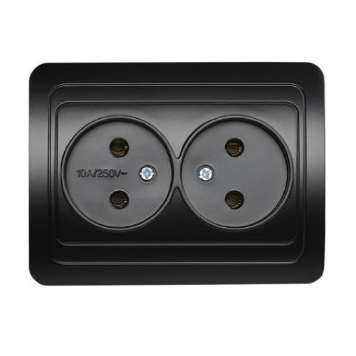 Розетка двойная одноместная без заземления 10А черная, "Марс" (SBE-02b-10-S2-N-c)