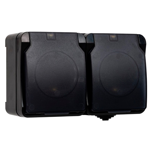 Розетка 2-местная с заземлением 16А с крышкой, IP54 "Сатурн" Smartbuy SBE-04b-16-S2-Z, черная