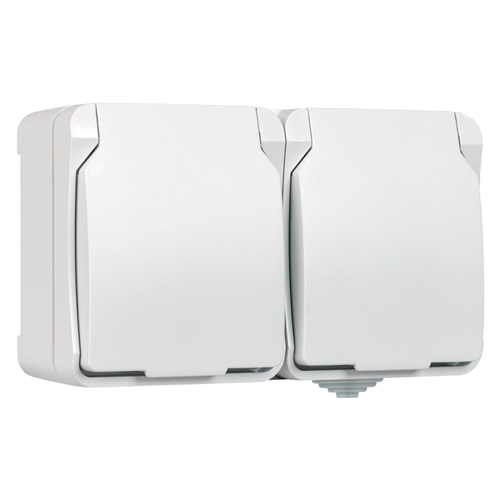 Розетка 2-местная с заземлением 16А с крышкой, IP54, белая, "Сатурн" (SBE-04g-16-S2-Z)