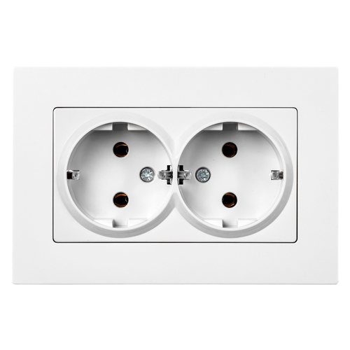 Розетка двойная с заземлением белая с рамкой "Нептун" (SBE-06w-16-S2-Z)
