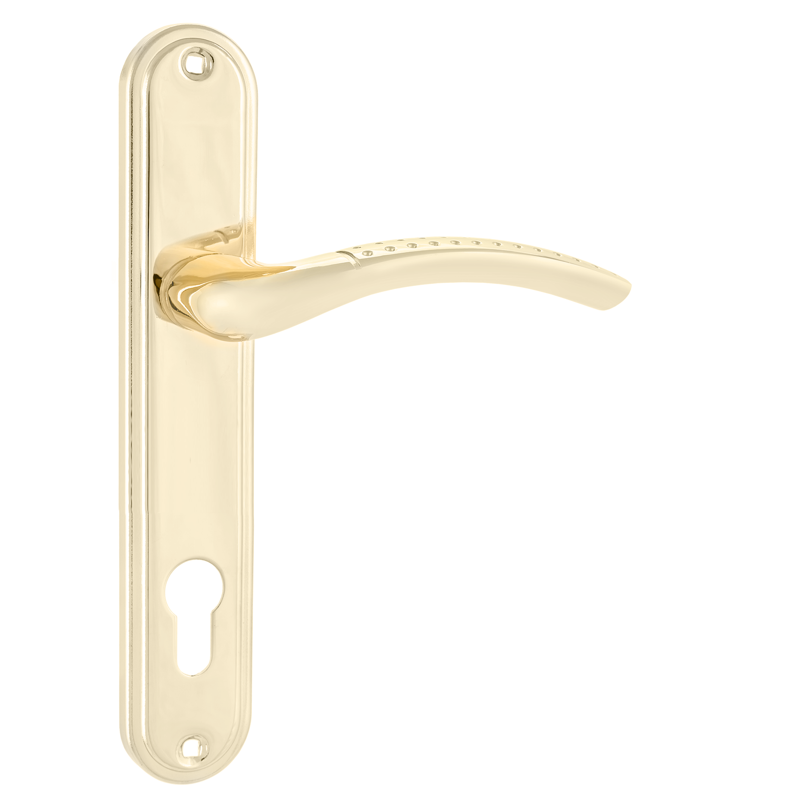 Ручка на планке под замок и цилиндровый механизм. Материал - алюминиевый сплав, гальваническое покрытие. Межосевое расстояние - 85 мм, размеры планки - 45 х 235 мм, длина ручки - 120 мм. В комплект входят винтовые стяжки и квадратный штырь (8х8 мм) 105 мм. Для дверей, толщиной 35-45 мм.