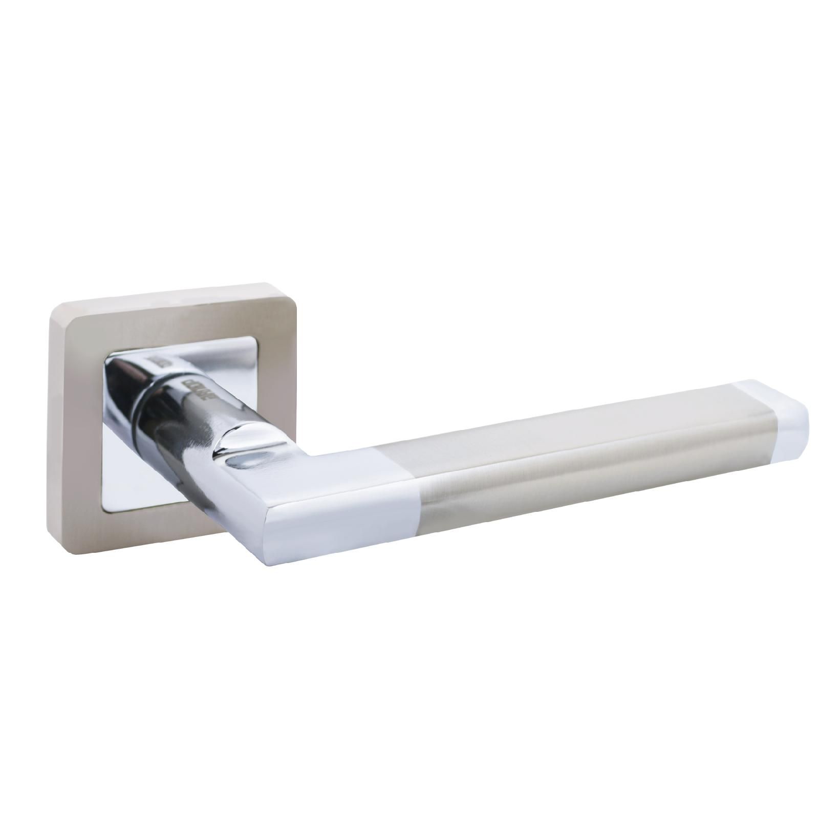 Ручка на квадратной накладке.Материал ручек — алюминиевый сплав, накладки — алюминиевый сплав. Многослойное гальваническое покрытие. Комплектуются винтовыми стяжками и шурупами. Длина разрезного квадрата - 105мм. Для дверей, толщиной 34-45 мм. Гарантийный срок эксплуатации — 3 года.