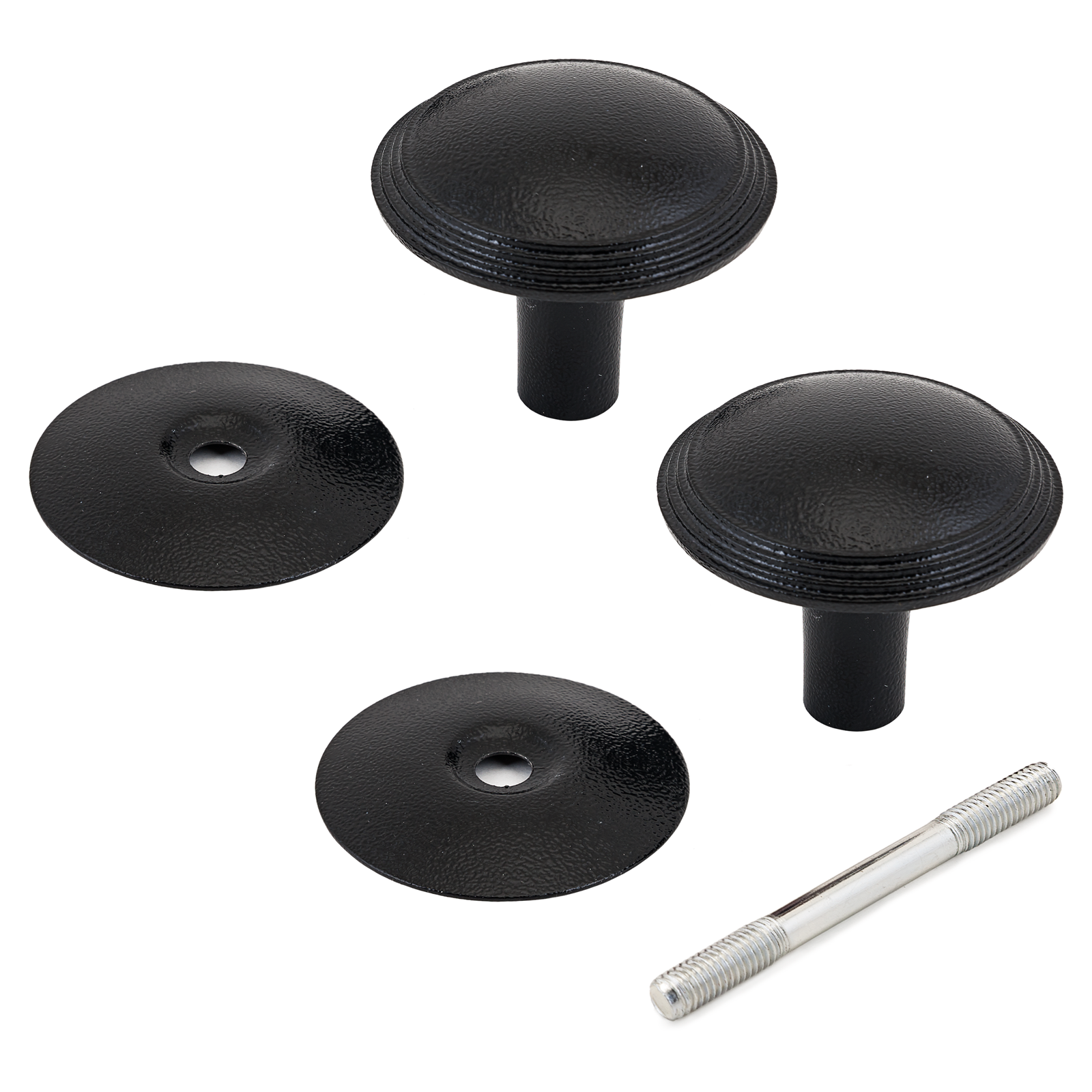 Ручка-кнопка для установки на внутренние и внешние двери толщиной 20-60 мм. Материал ручки – алюминиевый сплав, материал накладки – сталь, полимерное покрытие. Диаметр ручки - 55 мм. В комплекте соединительный штырь-винт М8х80 мм.
