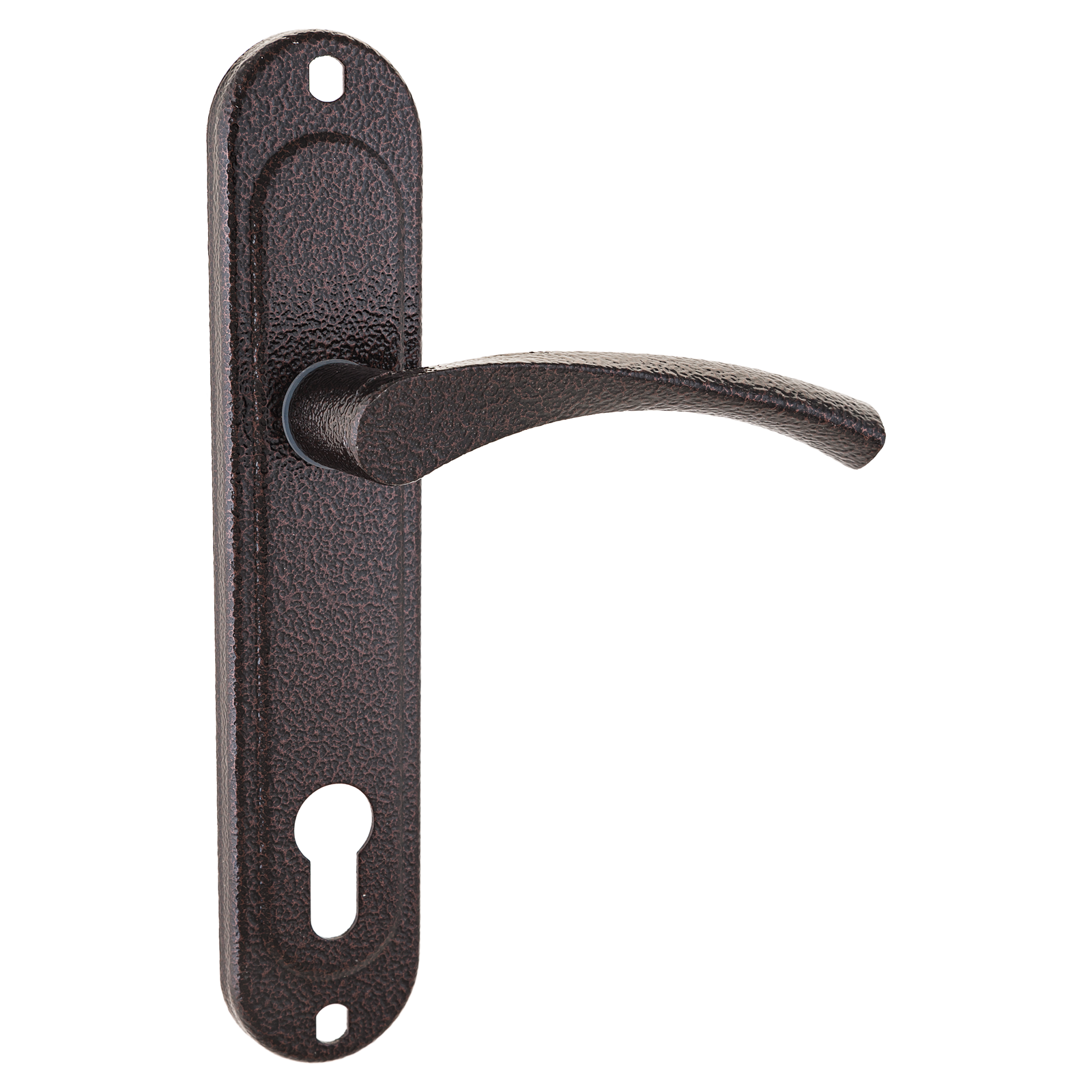 Ручка на планке под цилиндровый механизм. Материал - сталь, полимерное покрытие "медный антик". Межосевое расстояние - 85 мм. Размеры планки - 40х215 мм. Каплевидная ручка длиной 113 мм. В комплект входят винтовые стяжки и квадрат 8х8 мм.