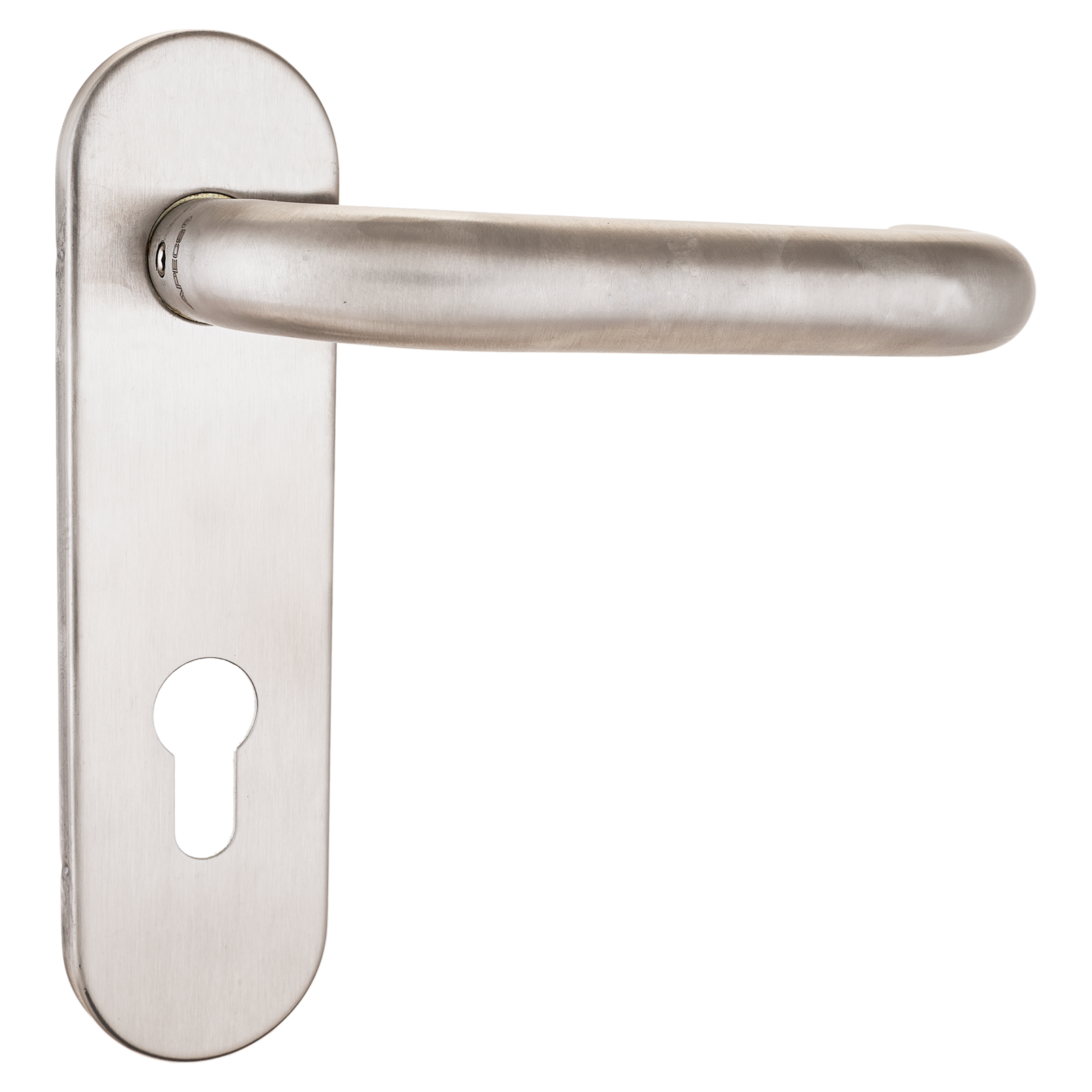 Ручка на планке под цилиндровый механизм. Предназначены для противопожарных дверей и систем "антипаника". Материал - нержавеющая сталь марки 201. Межосевое расстояние - 72 мм. Размеры планки - 170х47 мм, длина ручки - 140 мм. В комплект входят 2 винтовые стяжки М5х95-125 мм и неразрезной квадрат 9х9 мм длиной 140 мм.