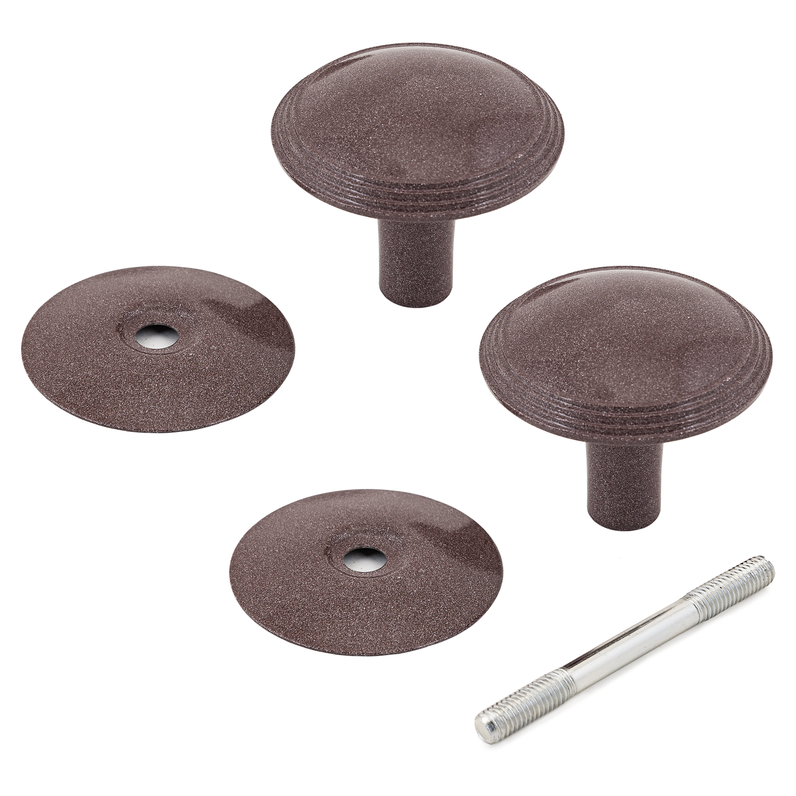 Ручка-кнопка для установки на внутренние и внешние двери толщиной 20-60 мм. Материал ручки – алюминиевый сплав, материал накладки – сталь, полимерное покрытие. Диаметр ручки - 55 мм. В комплекте соединительный штырь-винт М8х80 мм.