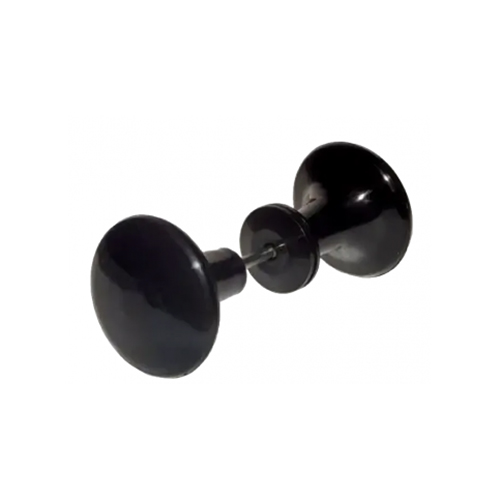 Ручка-кнопка - простая по конструкции фурнитура для межкомнатных дверей. Устанавливается в отверстие в полотне с помощью винта. Крепеж входит в комплект. Основной материал - пластик, поверхность окрашена в черный цвет. Рукоятка округлой формы.
