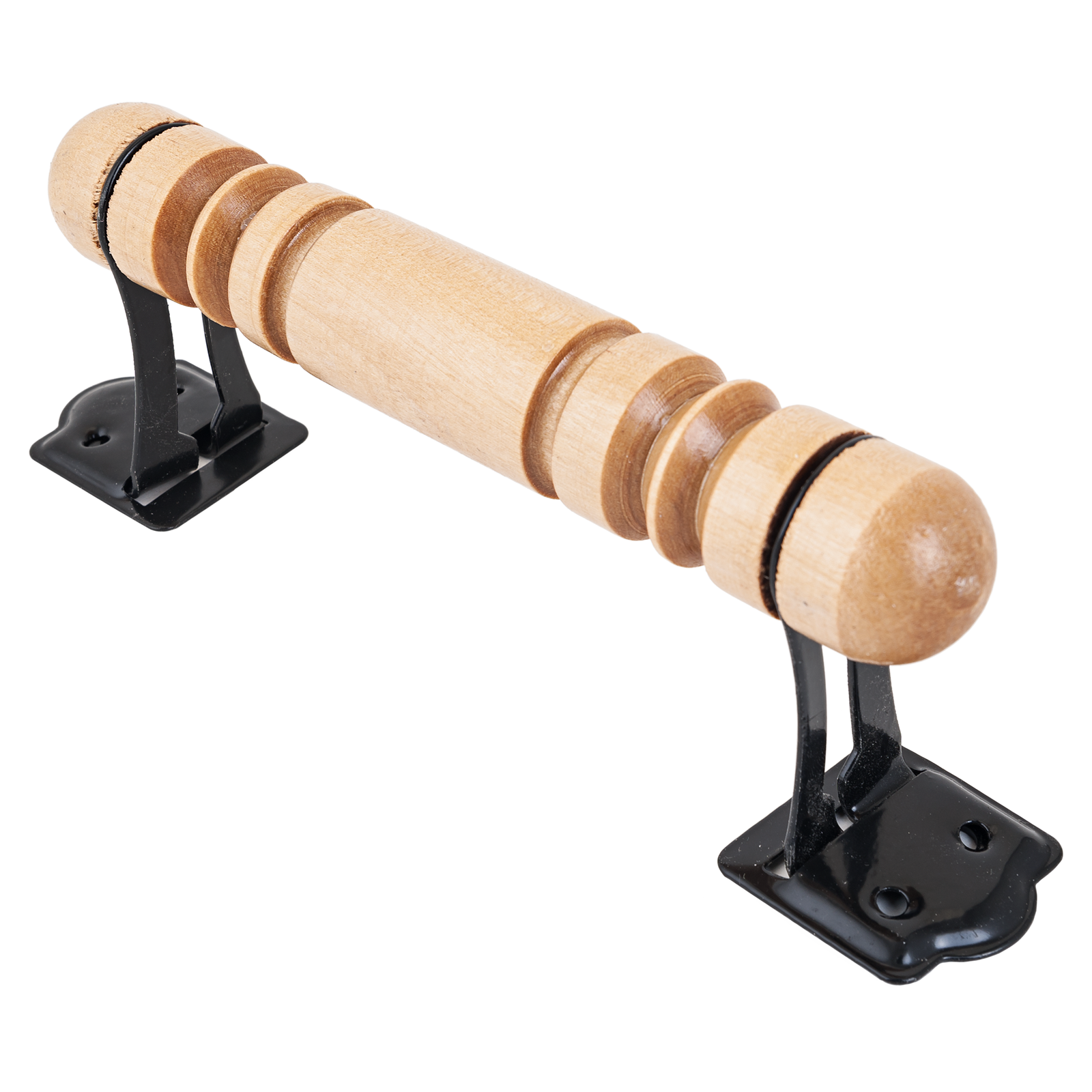 Ручка-скоба для деревянных окон и дверей. Ручка круглая точеная. Материал ручки - лакированное дерево, материал креплений - сталь с полимерным покрытием. Расстояние между креплениями - 210 мм, длина ручки - 130 мм, диаметр 30 мм. Крепеж в комплекте.