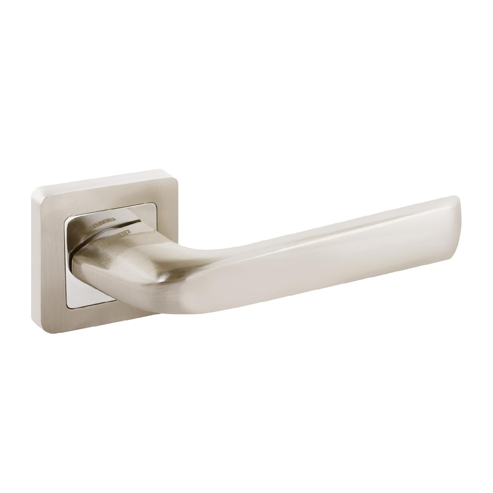 Ручка на квадратной накладке.Материал ручек — алюминиевый сплав, накладки — алюминиевый сплав. Многослойное гальваническое покрытие. Комплектуются винтовыми стяжками и шурупами. Длина разрезного квадрата - 105мм. Для дверей, толщиной 34-45 мм. Гарантийный срок эксплуатации — 3 года.