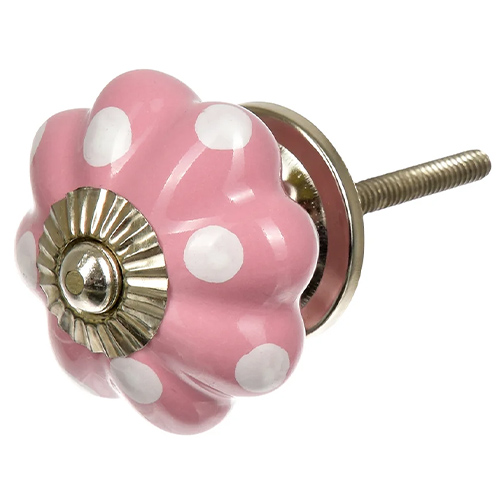 Ручка керамическая для мебели BLUMEN HAUS "В горох", розовый, рисунок белый