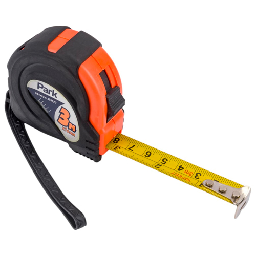 Рулетка Park с фиксатором, прорезиненный корпус, 3мx16мм