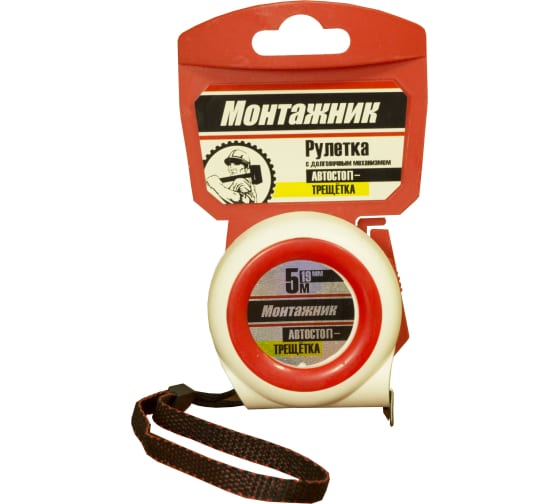 Рулетка "Монтажник" с автостопом-трещёткой 5 м х 19 мм