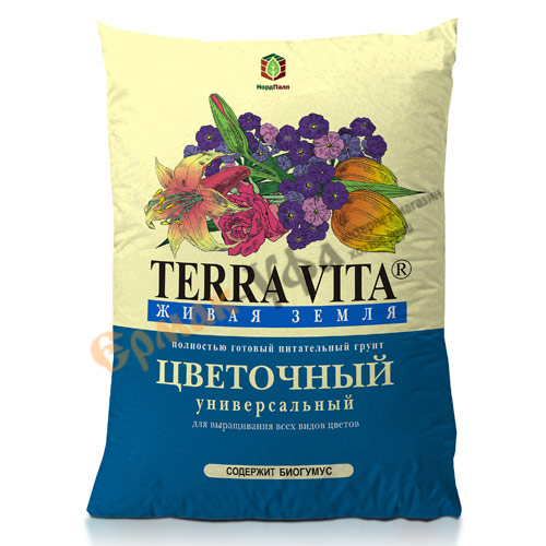 Грунт TERRA VITA (Живая земля) цветочный - это питательный полностью готовый грунт для выращивания всех видов садовых и комнатных цветов, а также декоративнолистных растений. Состав грунта был специально разработан для того, чтобы повысить качество, ускорить рост, увеличить цветение растений, выращиваемых дома и в саду. Содержит биогумус – естественный стимулятор роста растений, а также макро- и микроэлементы.