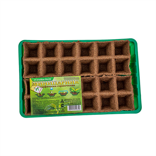 Кассета для рассады 24 ячейки набор с торф. горшочками 50*50, 24шт, + лоток+ крышка, 5/12