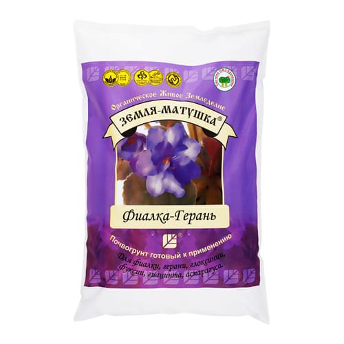 Черноземный почвогрунт оздоровлен фитобактериями и гумусом. Полностью готовый почвогрунт, состав которого наилучшим образом сбалансирован для посадки и пересадки фиалки, герани, глоксинии, фуксии, гиацинта, аспарагуса.