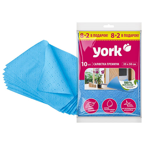 Салфетка сверхвлаговпитывающая Премиум YORK 8+2 шт, 35х50 см