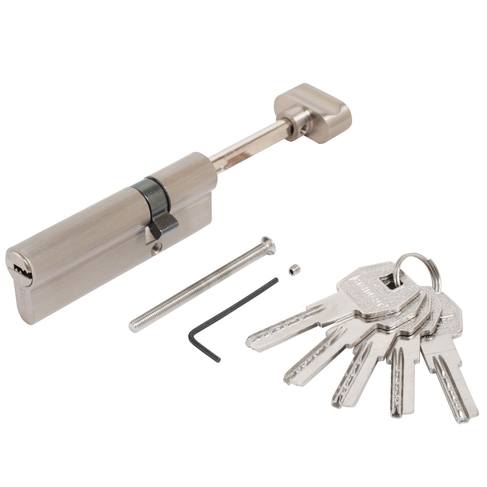 Механизм цилиндровый со штоком для врезных замков входных дверей. Перфоключ. Материал цилиндра: корпус - цинковый сплав, ротор - латунь.Выступающий на 30 градусов из плоскости механизма кулачок защищает цилиндр от выбивания из двери. Подходит для использования с броненакладками (длина шейки ключа - 15мм). Длина штока - 65 мм.