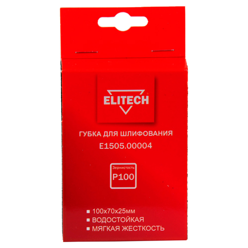 Губка для шлифования ELITECH E1505.00004, 100х70х25мм, P100, мягкая