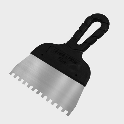Шпатель DЕCOR "Black Edition" 150х55 мм, 0,45 мм, зуб 4*4 мм, пластиковая ручка, нержавеющая сталь